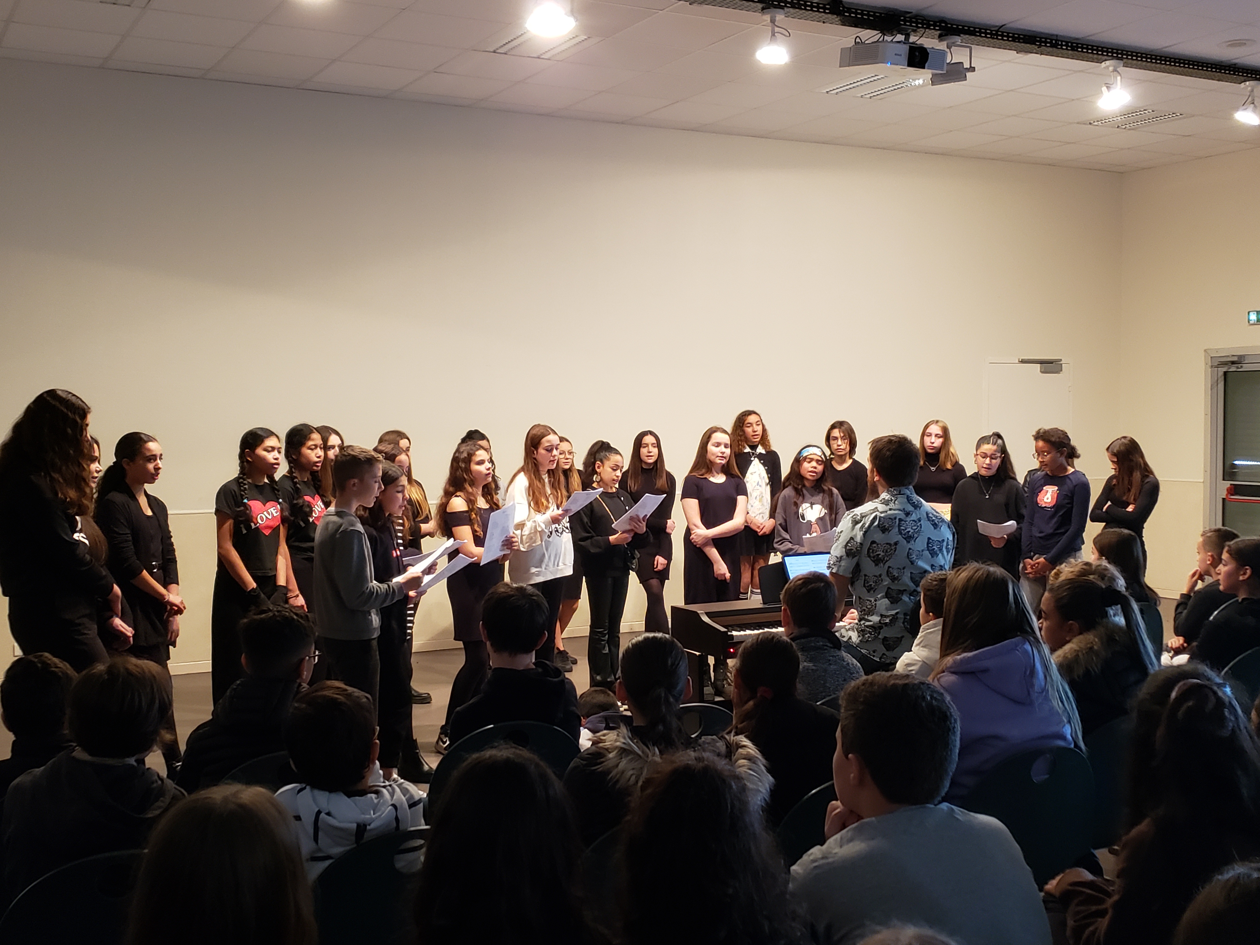 Les élèves des classes de 6èmes et la chorale du collège ont donné un concert intra-muros le vendredi 17 février devant d'autres classes du collège.
